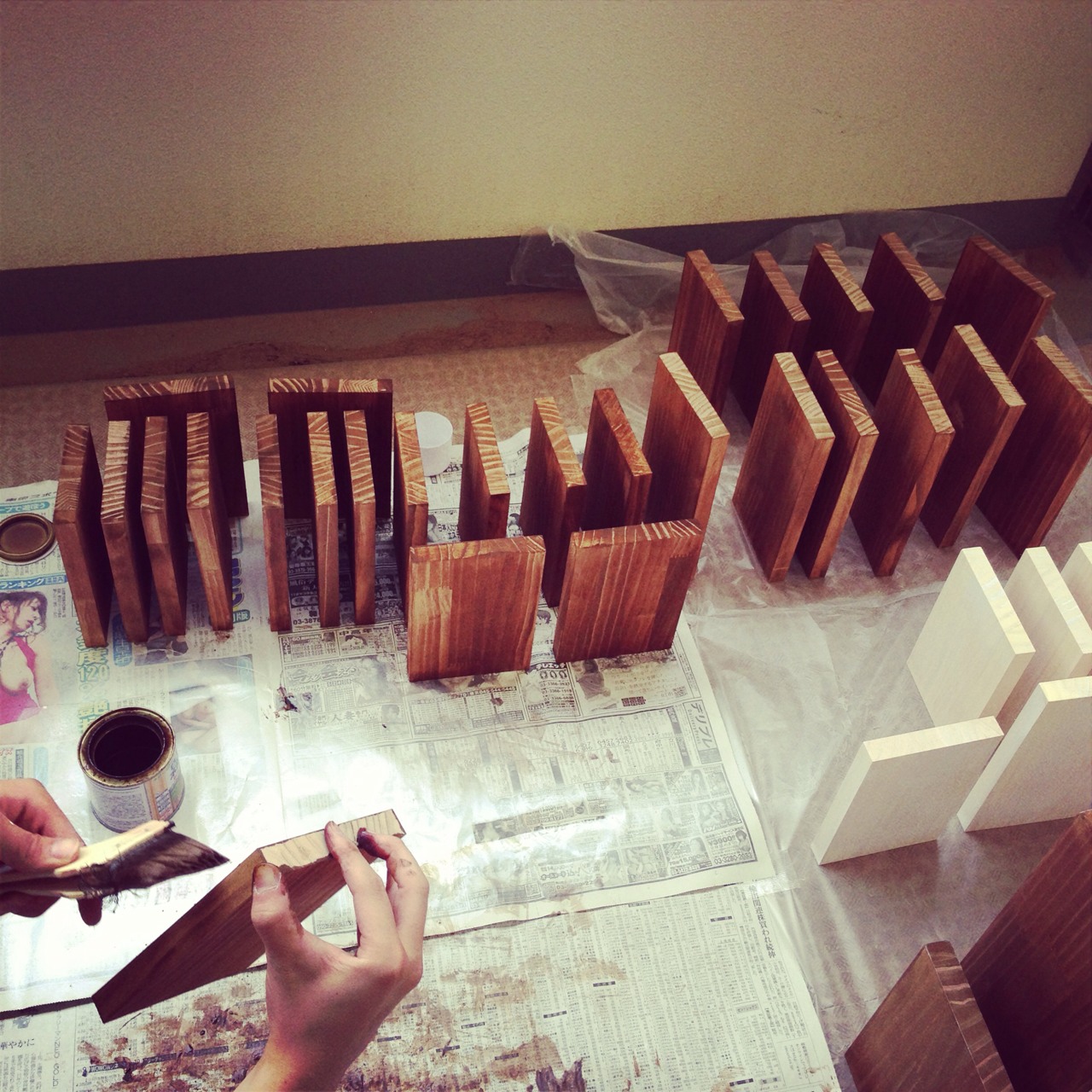 これを繰り返して木箱を量産。電動ドリルは必須です。